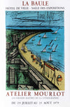 Original lithographic poster printed by Mourlot, Paris. This poster was created for an exhibition at La Baule in the Hotel de Ville from July 29 to August 25, 1979 and the image to the original "La Plage de la Baule 'by Bernard Buffet.
