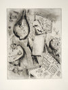 Returning to Paris in 1923 he met the art-dealer Vollard for whom he illustrated Gogol’s Dead Souls and the Fables of La Fontaine. Between 1941-47 he moved between occupied France and the USA, eventually settling near Nice. Chagall was a prolific artist, his work reminiscent of Jewish life, bible stories and of the folklore from his early years in Russia. He died in 1985.