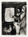 Embarking on the project during a time of economic uncertainty, Chagall travelled to Palestine in 1931 for inspiration and worked on the plates throughout the 1930s, even as anti-Semitic violence and the rise of the Nazis threatened its existence. By January 1934, a major blow to the project came when Vollard suspended his financial support as he weathered the Depression, but Chagall continued unabated. The first 66 plates were completed by 1939, with the latter 39 already begun; but after Vollard’s untimely death and the advent of WWII, the project was postponed.
