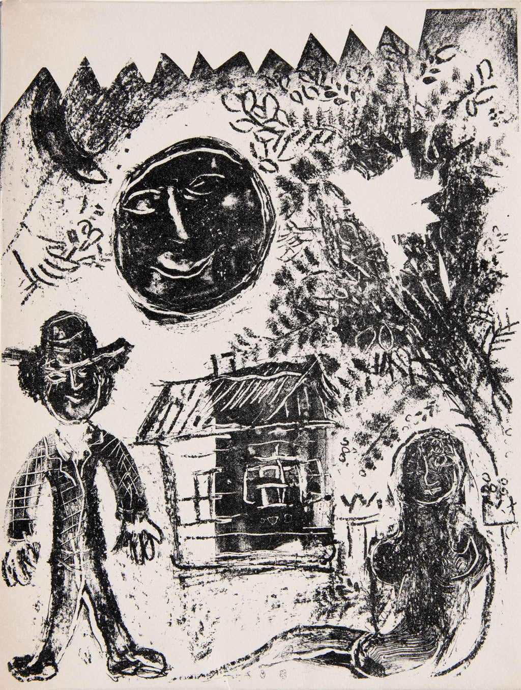 Returning to Paris in 1923 he met the art-dealer Vollard for whom he illustrated Gogol’s Dead Souls and the Fables of La Fontaine. Between 1941-47 he moved between occupied France and the USA, eventually settling near Nice. Chagall was a prolific artist, his work reminiscent of Jewish life, bible stories and of the folklore from his early years in Russia. He died in 1985.