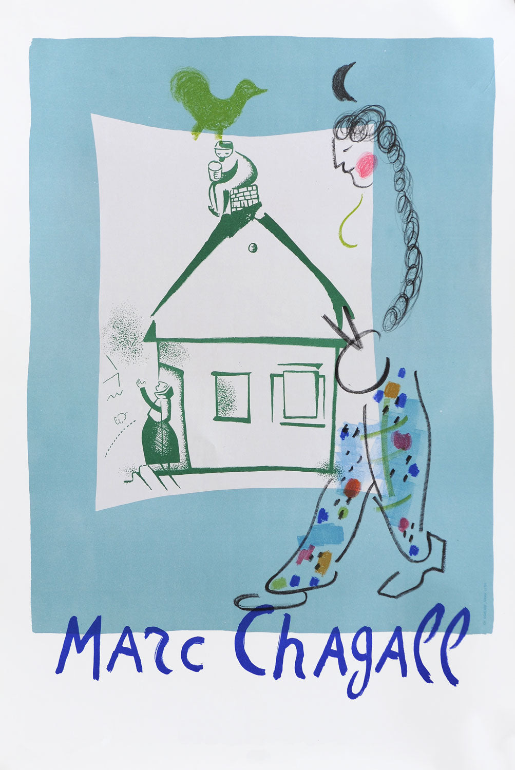 Returning to Paris in 1923 he met the art-dealer Vollard for whom he illustrated Gogol’s Dead Souls and the Fables of La Fontaine. Between 1941-47 he moved between occupied France and the USA, eventually settling near Nice. Chagall was a prolific artist, his work reminiscent of Jewish life, bible stories and of the folklore from his early years in Russia. He died in 1985.
