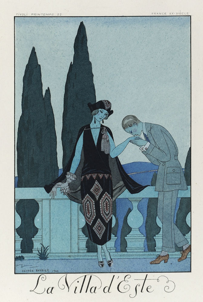 Barbier’s illustrations and pochoir prints from the 1920s are widely considered to epitomise the spirit of Art Deco and Jazz Age Paris with their combination of diverse influences such a Orientalism, Aubrey Beardsley, classical Greek vase decorations and 18th century French paintings. He died in 1932 at the zenith of his artistic career, with regular contributions to L’Illustration magazine.
