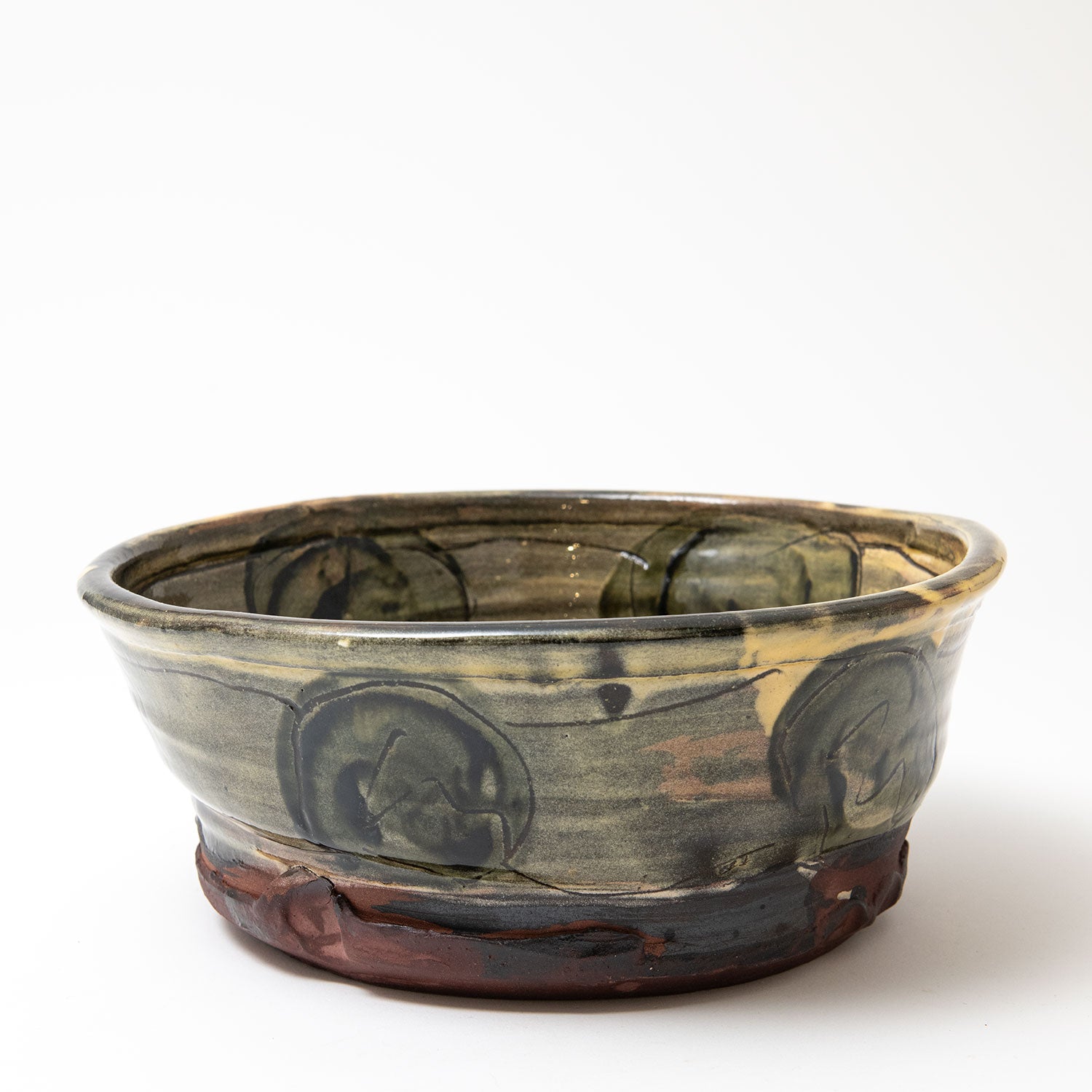Yellow & black with green spots & sgraffito