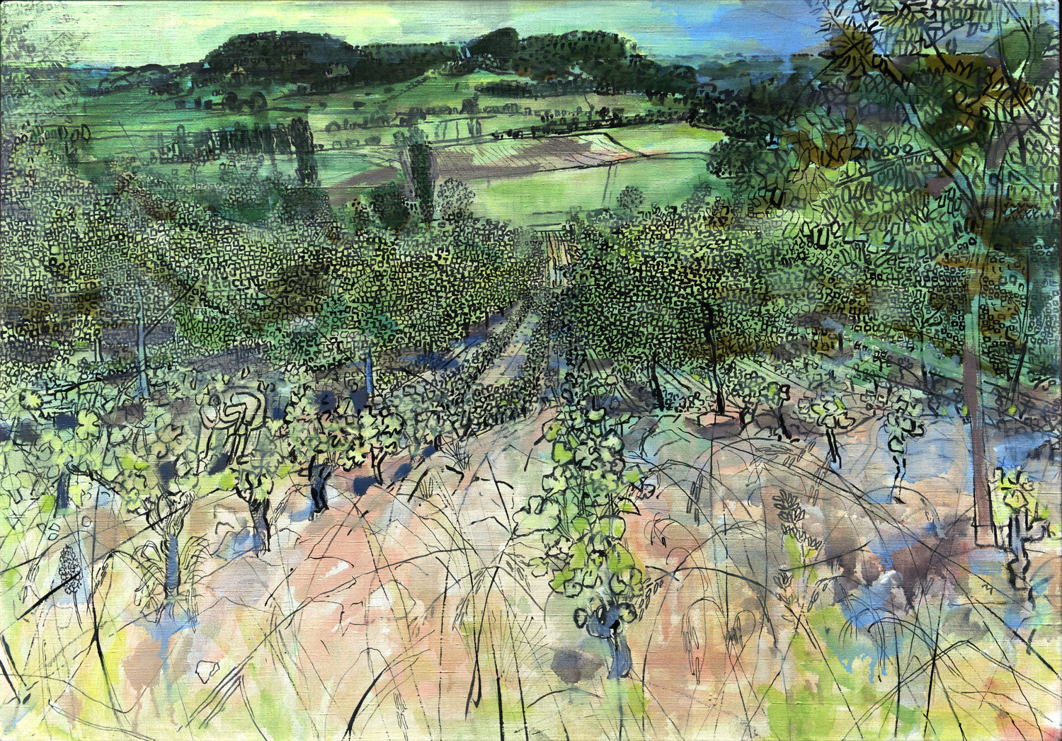 In 1955 Gross bought a house at Le Boulvé, a small village in hill country, some 60 kilometres north of Montauban. When he retired from The Slade he spent the months from May until October each year painting at Le Boulvé, making oils and watercolours, seven days a week, always painting directly from nature. Subjects and locations were carefully considered, decided in advance, and Gross often returned to a place to do further work on a painting.