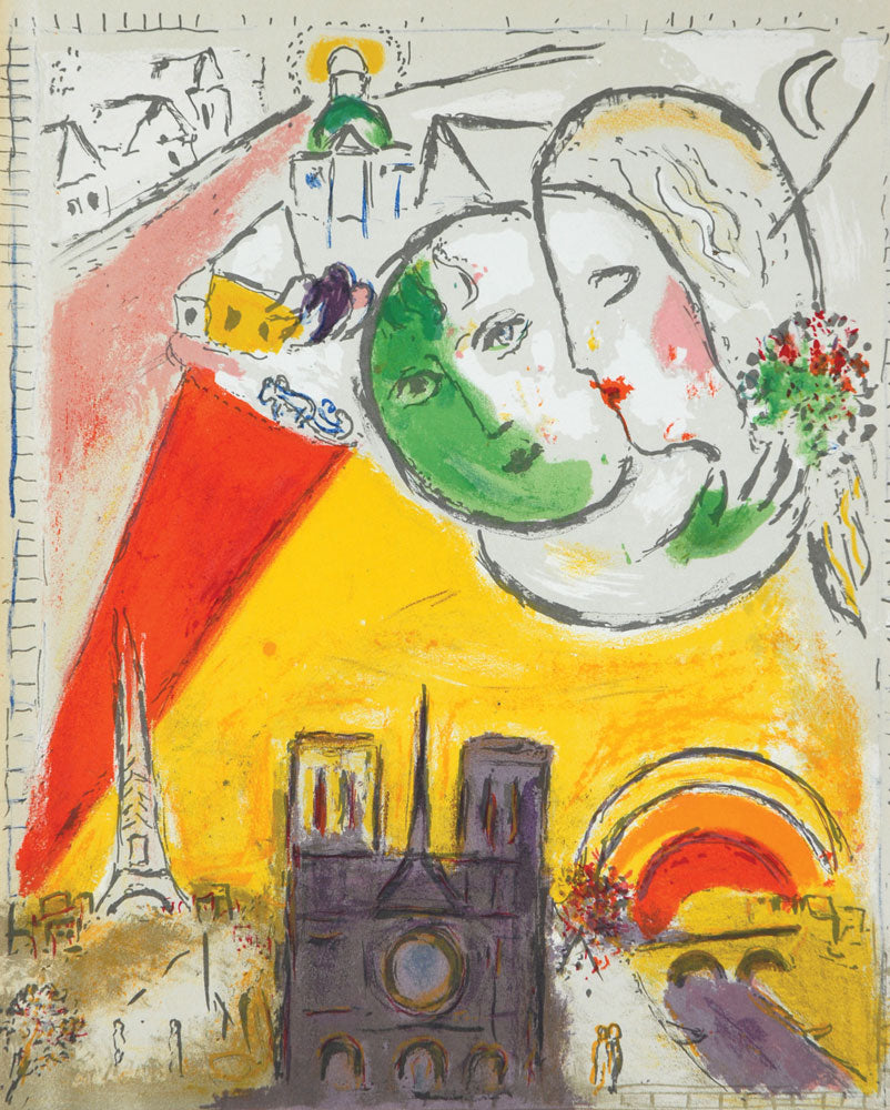 Returning to Paris in 1923 he met the art-dealer Vollard for whom he illustrated Gogol’s Dead Souls and the Fables of La Fontaine. Between 1941-47 he moved between occupied France and the USA, eventually settling near Nice. Chagall was a prolific artist, his work reminiscent of Jewish life, bible stories and of the folklore from his early years in Russia. He died in 1985.