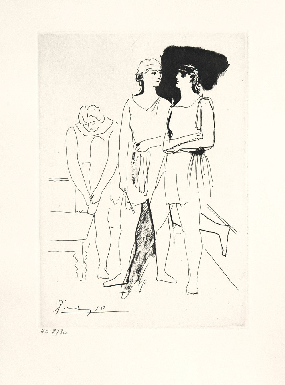 These original copper engravings, printed and published in Zurich in 1943, are after a series of 14 drawings made by Picasso to accompany poems by Sappho. The prints offered here are from the extremely scarce Hors Commerce suite of 30 sets only and are as