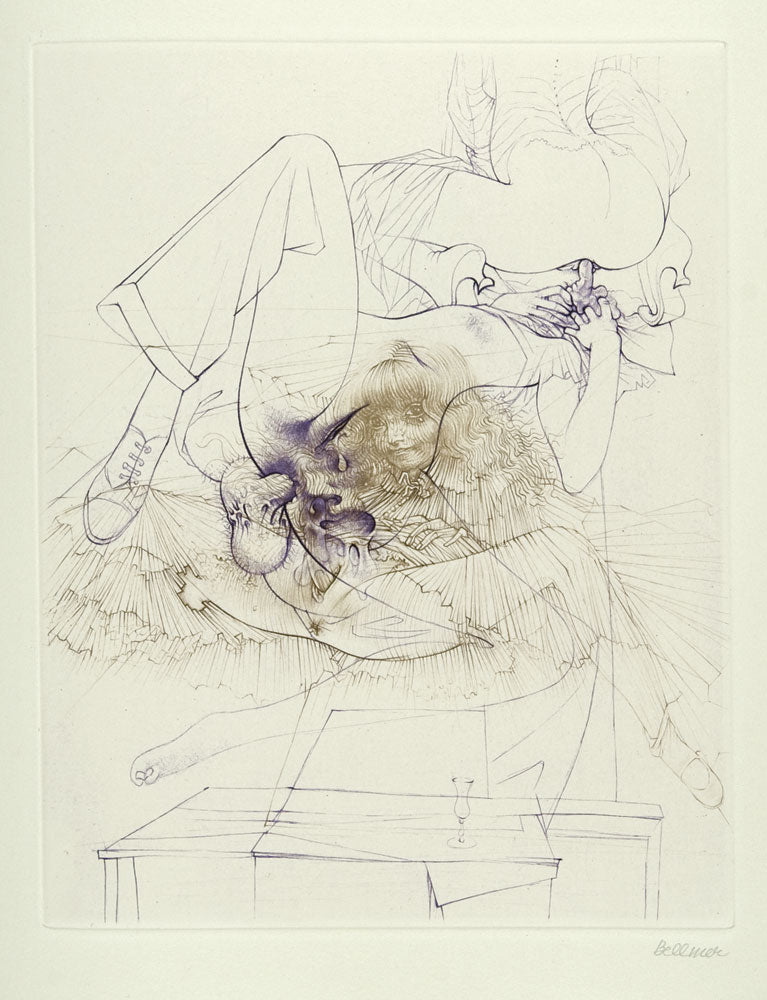 Bellmer was born in Kattowitz, Germany (now Katowice, Poland) and trained as a technical draughtsman in Berlin. He became a friend of Georg Grosz, a strong influence upon his early work and, with the Nazi rise to power in 1933, declared that he too wouldn’t produce art in support of them, rebelling through his Dolls series. These figures were explicitly erotic and a challenge to the fascist aesthetic.