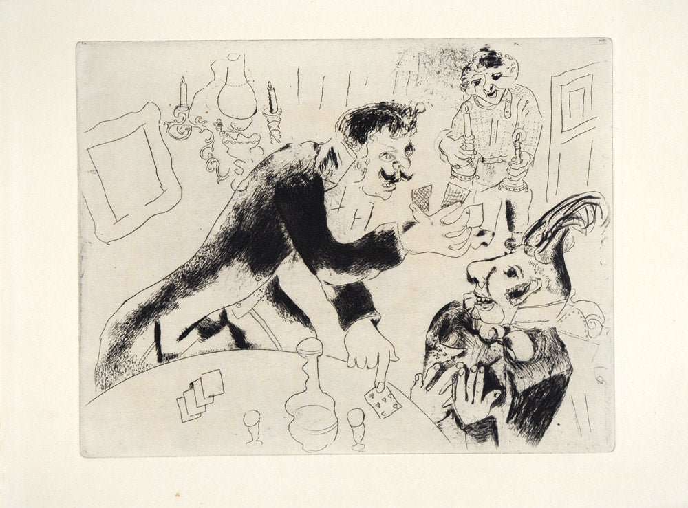 Returning to Paris in 1923 he met the art-dealer Vollard for whom he illustrated Gogol’s Dead Souls and the Fables of La Fontaine. Between 1941-47 he moved between occupied France and the USA, eventually settling near Nice. Chagall was a prolific artist, his work reminiscent of Jewish life, bible stories and of the folklore from his early years in Russia. He died in 1985.