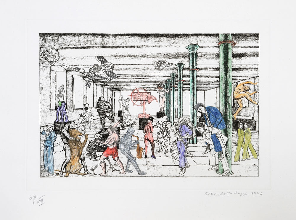 A significant member of the Group, Paolozzi greatly influenced the development of Pop Art. He emerged fully onto the Pop Art scene in 1962 with his abstract, robot-like figures such as Four Towers and Solo, but of all his work his screenprints are said to have had the largest impact on Pop Art. He taught all over the world as guest professor and lecturer, and was knighted in 1988. Eduardo Paolozzi died in 2005.