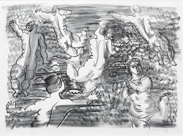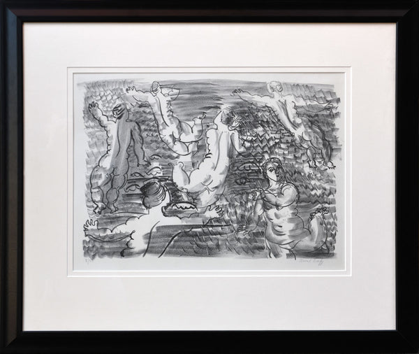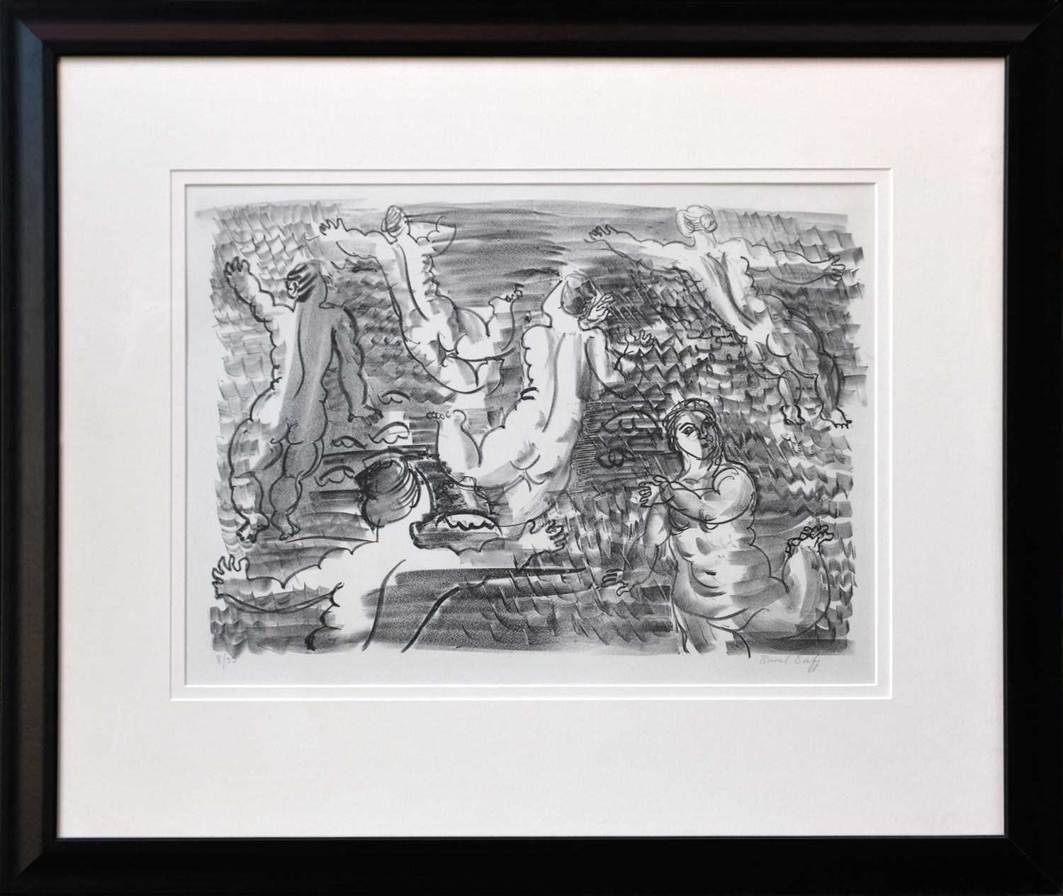 Dufy’s work is characterized by brightly coloured drawings suiting the glittering scenes of luxury and pleasure he favoured; the accessibility of his work lent itself to commercial advertising and was widely copied as a result. Dufy died at Forcalquier in 1953 and was buried near Matisse in Cimiez, a suburb of the city of Nice.