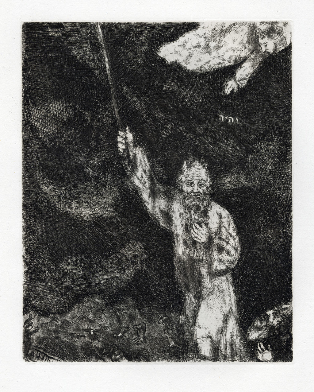 This etching is from Chagall’s sublime Bible series. Almost 10 years in the making, and comprising over 100 etchings, it was the third of Chagall’s etching suites to be commissioned by the publisher Ambroise Vollard. Chagall’s Jewish identity had always informed his work; in this major suite, begun in 1930, it was to take centre stage.
