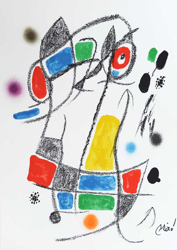 Drawing on his universe of signs and symbols, he was able to create a world populated by strange configurations in vivid colours. He made many prints throughout his career and in 1954 he was given the Venice Biennale print making prize. The Foundation Joan Miró was opened in 1975 overlooking Barcelona. He died in 1983.