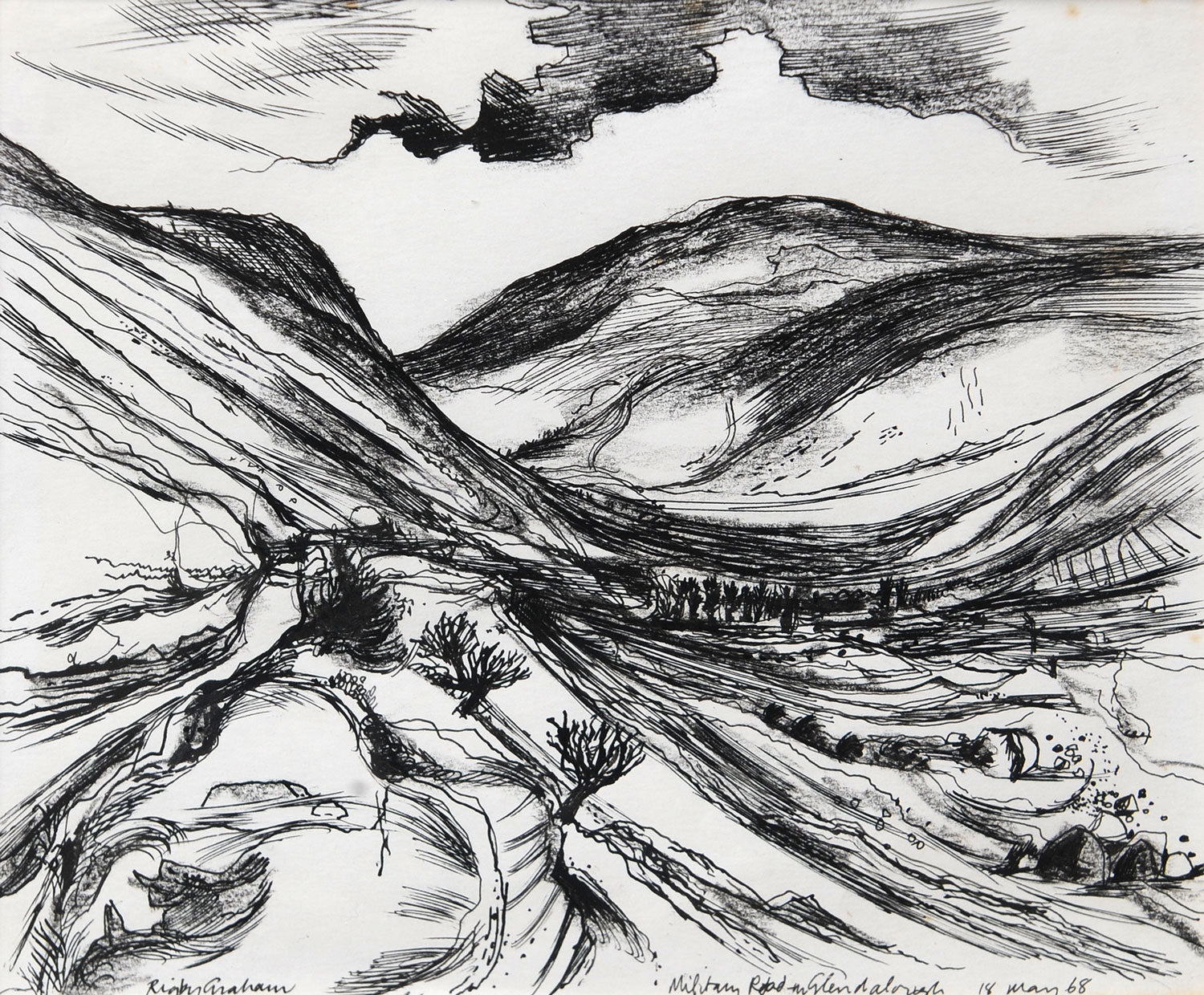 Principally a topographic artist, Rigby Graham was born in Stretford in 1931. He moved to Leicester in his early childhood where he attended Leicester College of Art, specialising in mural painting. After teaching at local schools, Graham returned to lecture at the College of Art, firstly in Graphic Design and Printing, then in Education and latterly in Bookbinding. He retired from teaching in 1983.