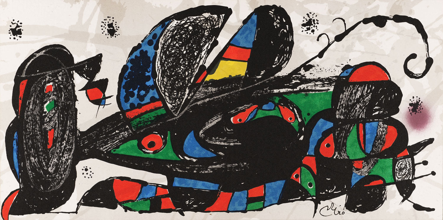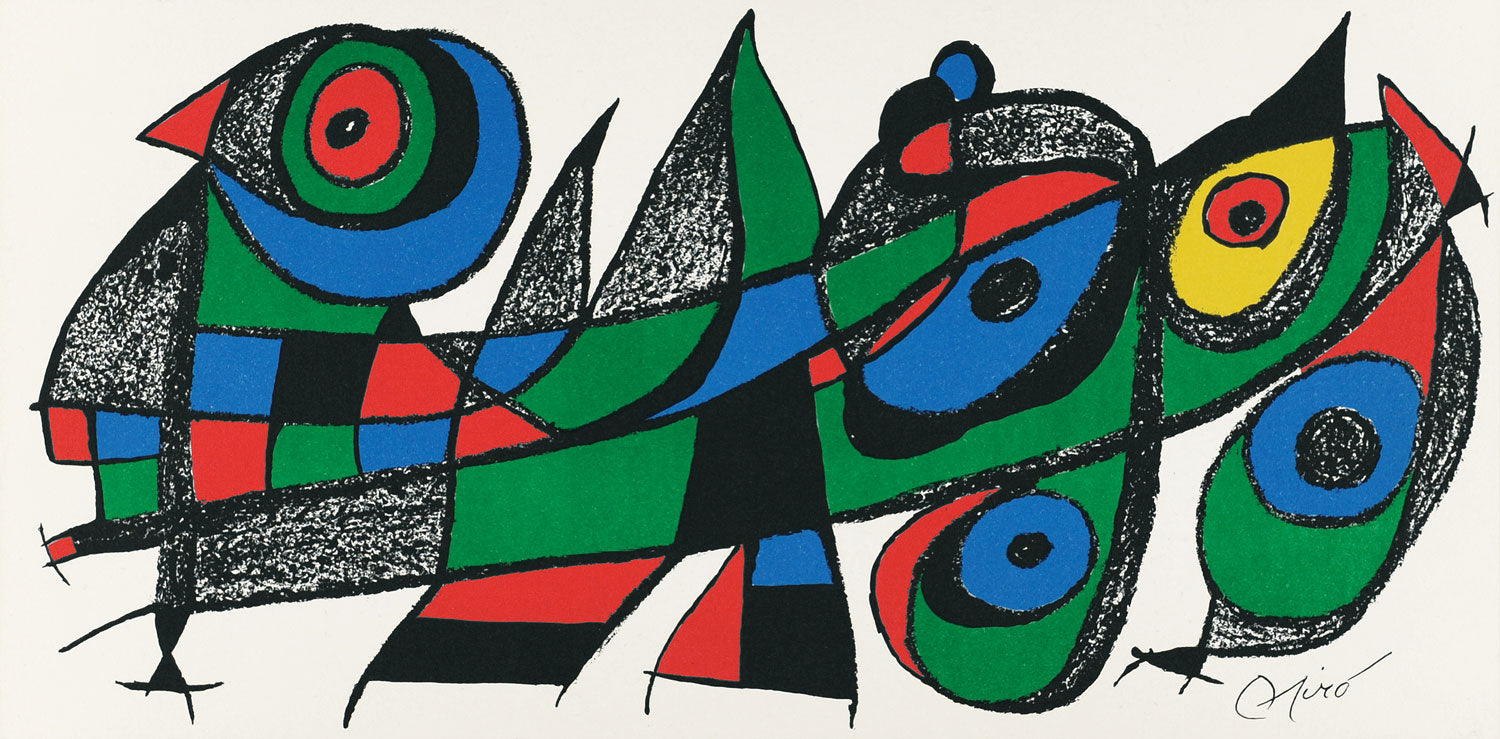 Drawing on his universe of signs and symbols, he was able to create a world populated by strange configurations in vivid colours. He made many prints throughout his career and in 1954 he was given the Venice Biennale print making prize. The Foundation Joan Miró was opened in 1975 overlooking Barcelona. He died in 1983.