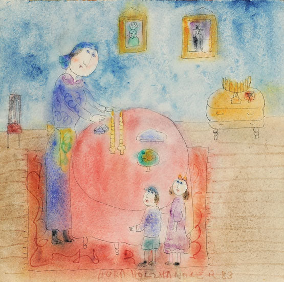 Her childhood memories and Jewish roots permeate her work, as do her Buddhist beliefs, and she claims that “now, as a Buddhist, I can really enjoy being Jewish.” Holzhandler’s innocent art has many fans, including Irish writer Edna O’Brien, television art historian Sister Wendy Beckett and comedian Jack Dee amongst others.