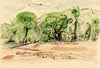 From the very early years of Gross’ career translucent watercolour were a major preoccupation, used to describe the many places at home and abroad where he sought inspiration. In informal scenes of Villeneuve garden picnics and pastoral outings, his descriptive line is typically light and lyrical: freely drawn, it dances over the page, looping around luminous patches of watercolour wash that shimmer like stained glass.