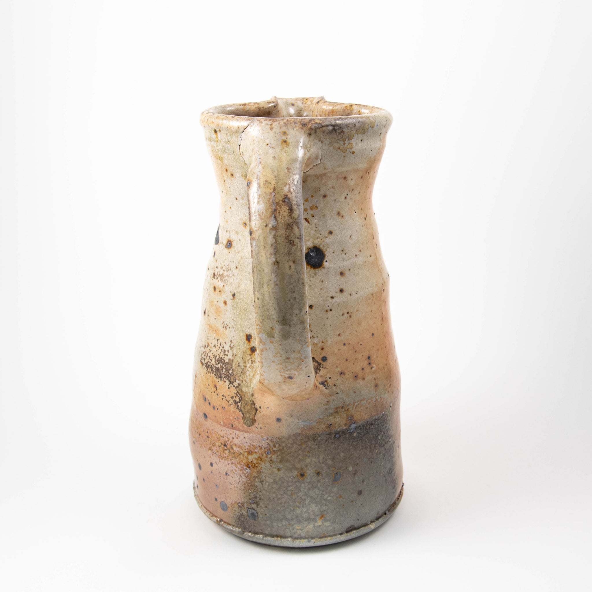Natural ash glaze occurs in a wood fired kiln when ash particles carried around the kiln by the hot air and flames land and melt on the pots, often creating dramatic colour variations on their surfaces depending on their position in the kiln.