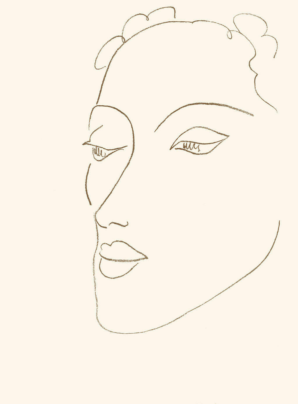 In 1945, following the success of his series of lithographs under the titles Visages, inspired by Reverdy's poetry, Matisse began working with several exotic models, mostly Polynesian, to prepare illustrations for an ambitious suite of lithographs that he hoped to do in homage to his friend, the poet John-Antoine Nau.