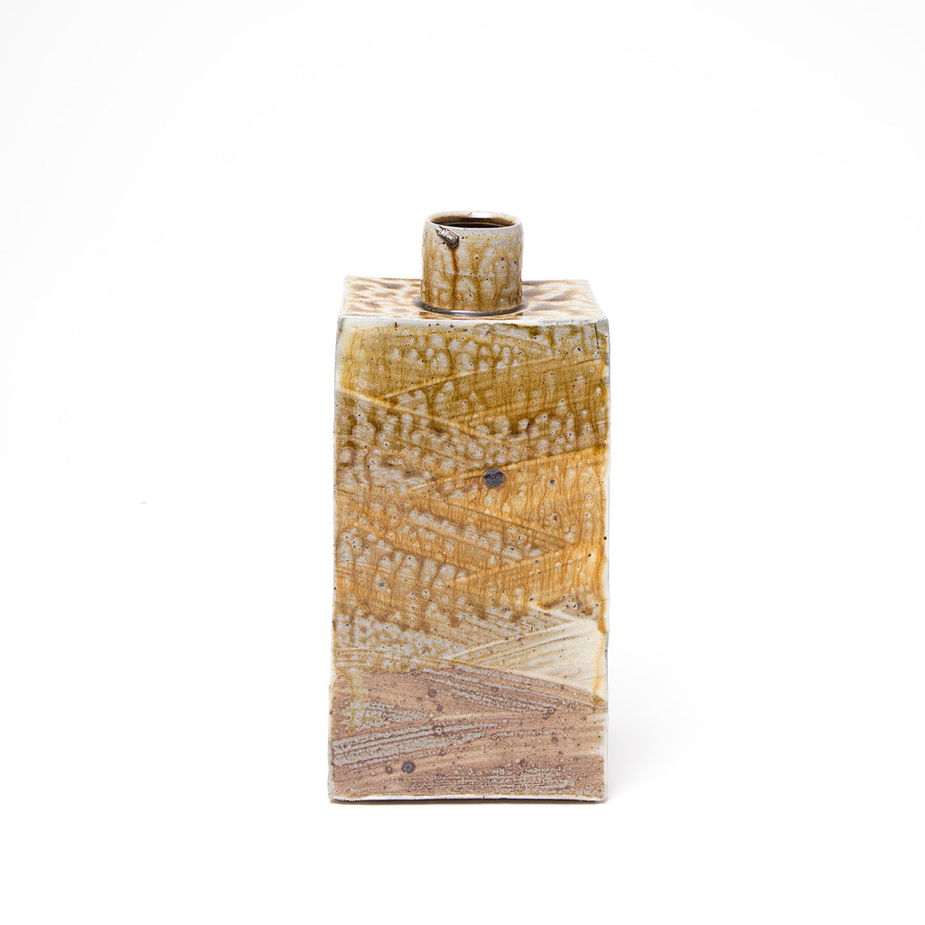 Anne Mette has built three large kilns in her native Denmark, the latest a two chamber wood firing kiln built in September 2011 at her ramshackle farmhouse on the west coast of Bornholm. Though all her pots exhibit her desire to challenge herself in glaze and form, her slab bottles are certainly Anne Mette’s tour de force. Her pottery combines beautiful aesthetics with a function befitting the hardiest domestic ware.