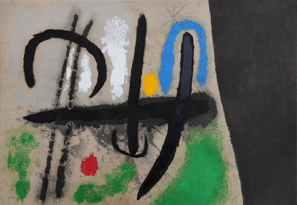 Drawing on his universe of signs and symbols, he was able to create a world populated by strange configurations in vivid colours. He made many prints throughout his career and in 1954 he was given the Venice Biennale print making prize. The Foundation Joan Miró was opened in 1975 overlooking Barcelona. He died in 1983.