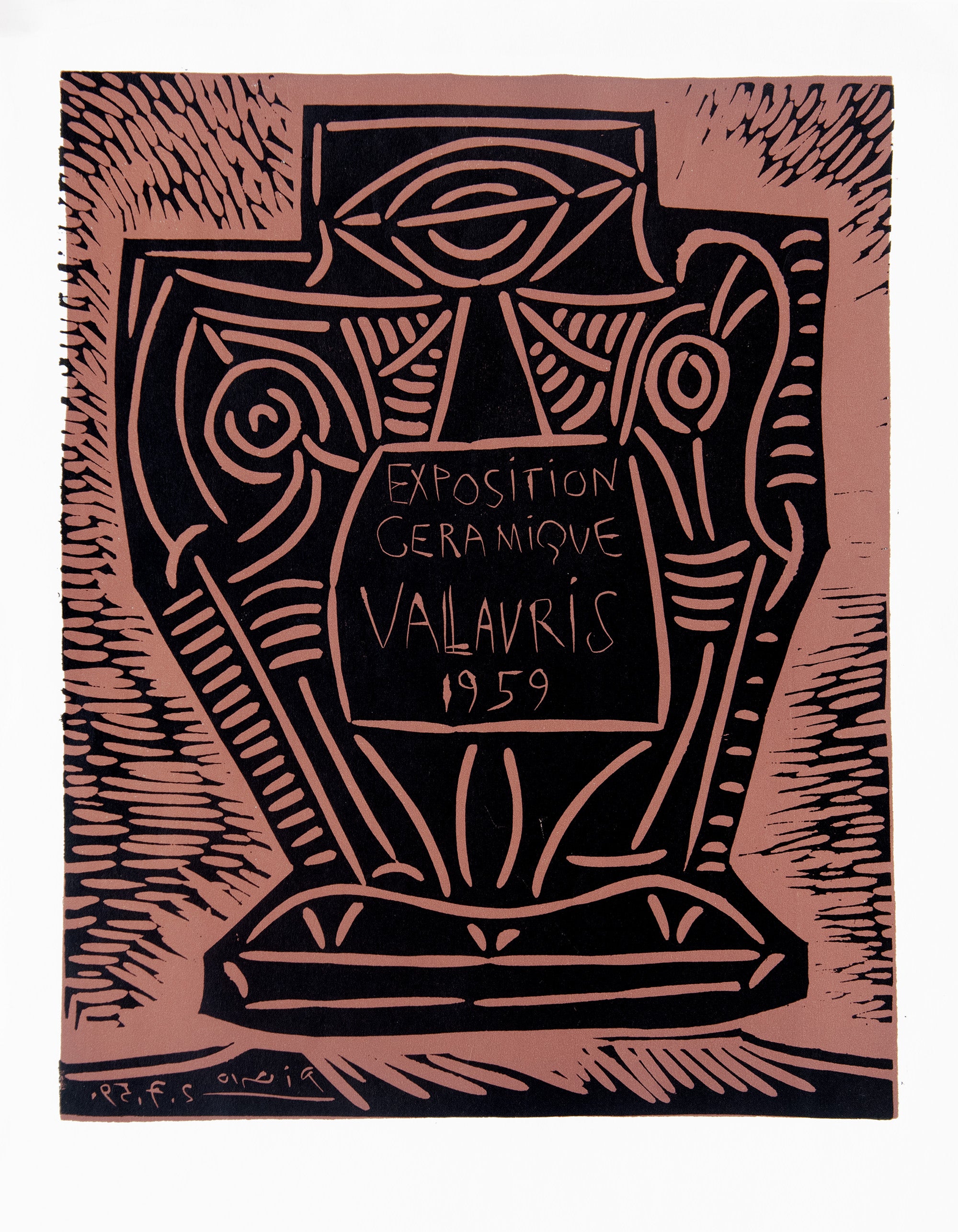 This is the second poster in a series of two which were commissioned by the Vallauris Potters Association. The posters were designed and made by Picasso on different dates and designed with a drawing "to create the feeling of a multiplicity of forms".