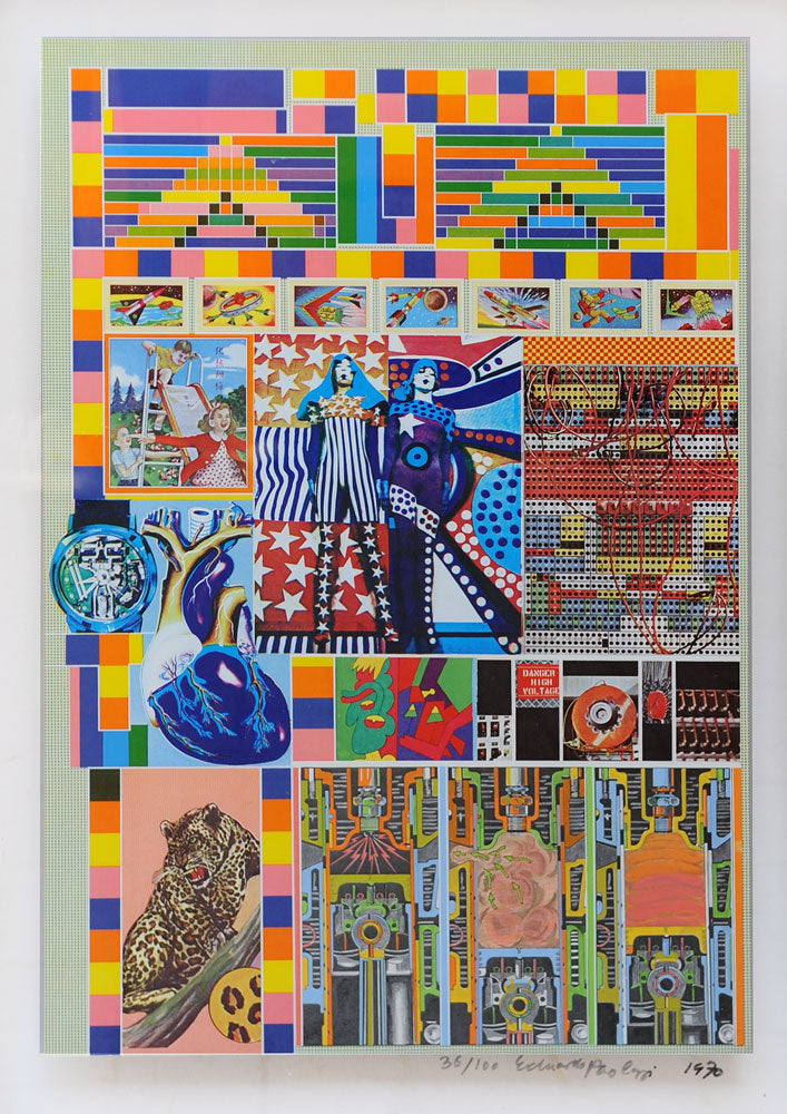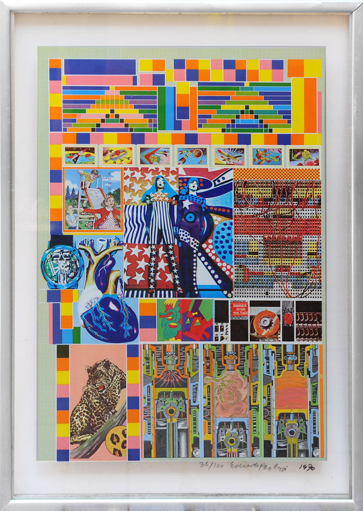 A significant member of the Group, Paolozzi greatly influenced the development of Pop Art. He emerged fully onto the Pop Art scene in 1962 with his abstract, robot-like figures such as Four Towers and Solo, but of all his work his screenprints are said to have had the largest impact on Pop Art. He taught all over the world as guest professor and lecturer, and was knighted in 1988. Eduardo Paolozzi died in 2005.