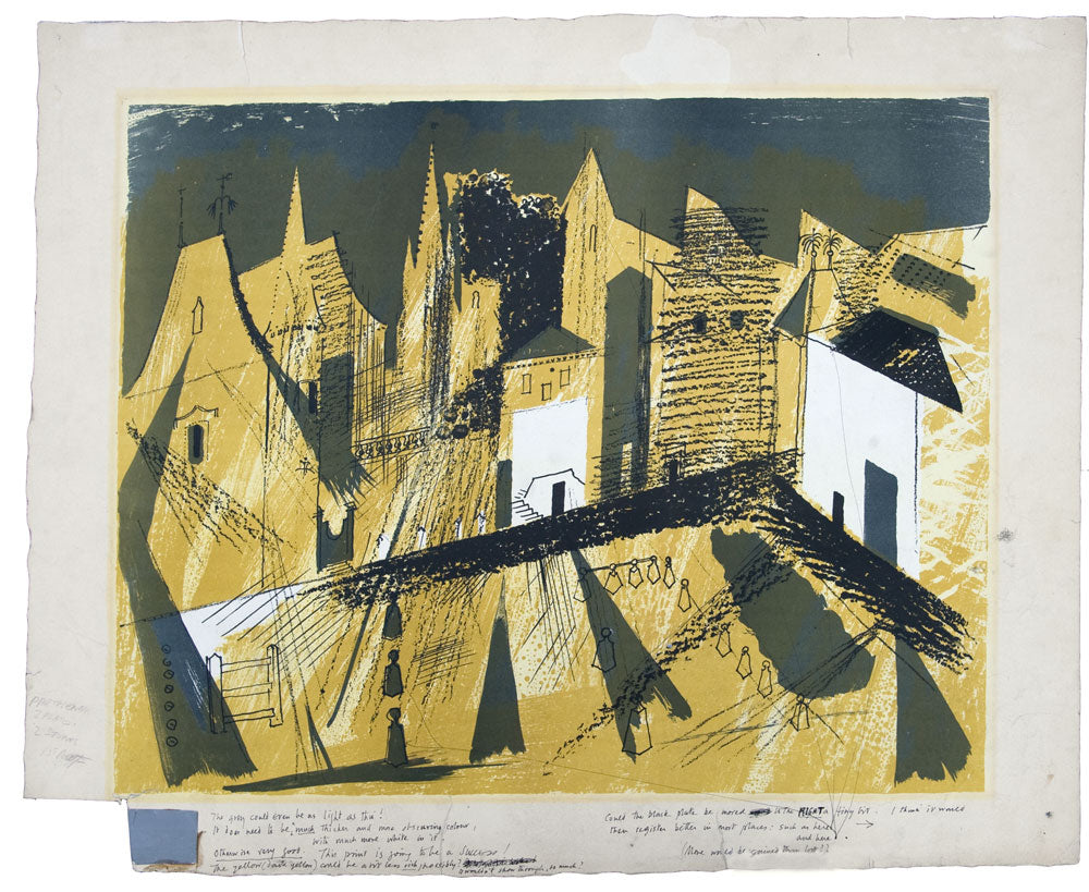 Piper experimented with printmaking from as early as 1923 when he produced four wood engravings. Piper’s prints embody his love of Britain through their depiction of its art, architecture and topography. However frequently underpinning their design, as the artist Rigby Graham has indicated, are the elements of collage, construction and assemblage that featured in his modernist work of the early 1930s.