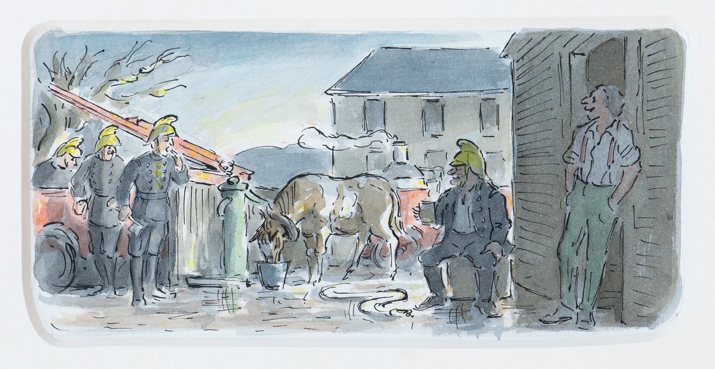 Ardizzone studied art at Westminster School of Art in 1920-1 under Bernard Meninsky. He was an official war artist during World War II, working widely in Europe and North Africa, and his illustrated diaries are notable records. After the war he established a strong reputation as a book illustrator and writer. He had a retrospective at the Victoria and Albert Museum in 1974.