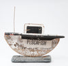 Whilst "Pesca Fish" shows a monochrome palette, t'was the colourful Sam Llewellyn, (art historian, novelist, editor), who inspired this piece in his story about illegal fishing. 90% of our beach-combing takes place all around the U.K. In addition, rich pickings have been had along the south and west shores of Eire, and the Mediterranean.