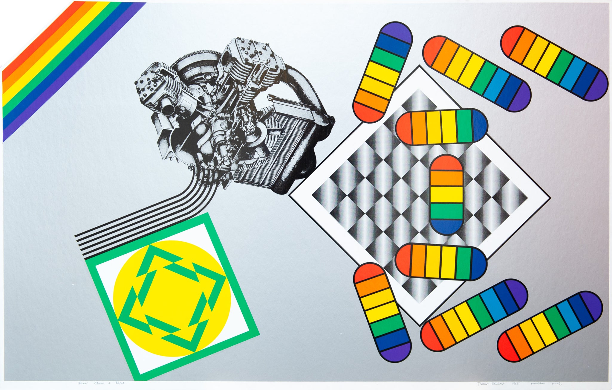 Phillips used the screen printing process to full advantage taking a highly specialised range of imagery encompassing the automobile, the machine, the scientific diagram and 'glamour' poses. He plays with the familiar and unfamiliar to create illusions of recognition; very typical of 1960's Pop Art.