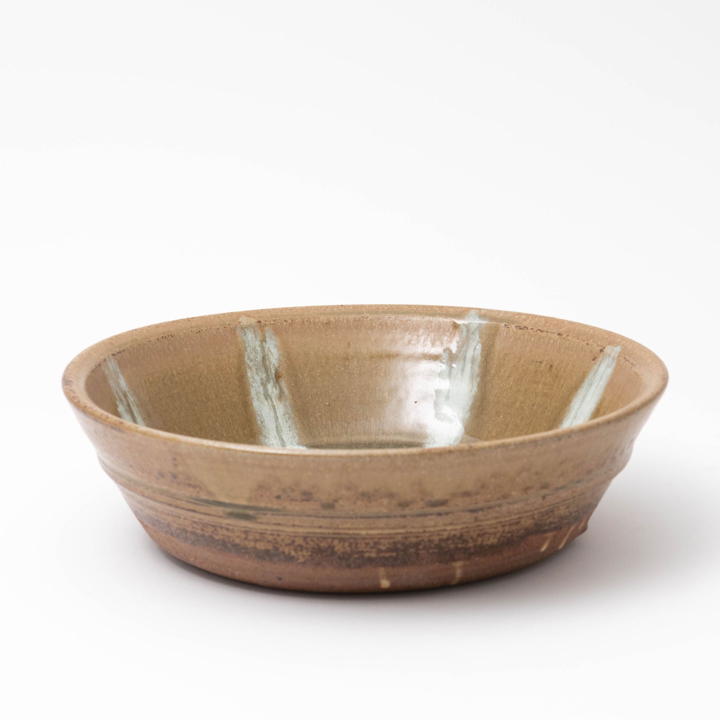 • Combed. Ash glaze with Nuka pours • Signed • 9cm x 32cm