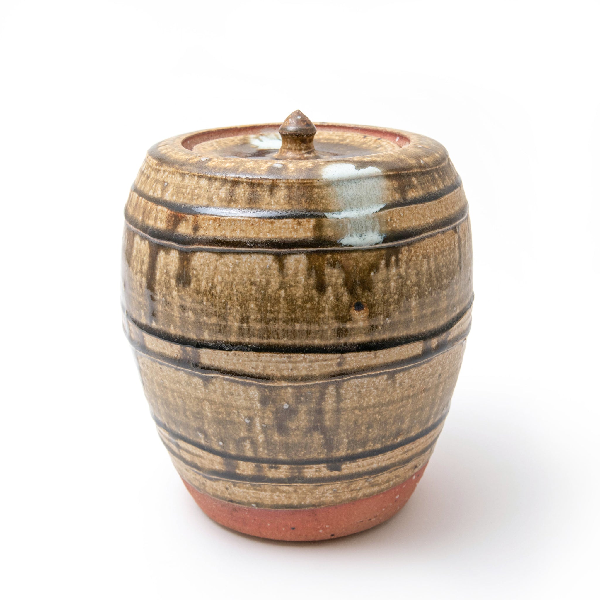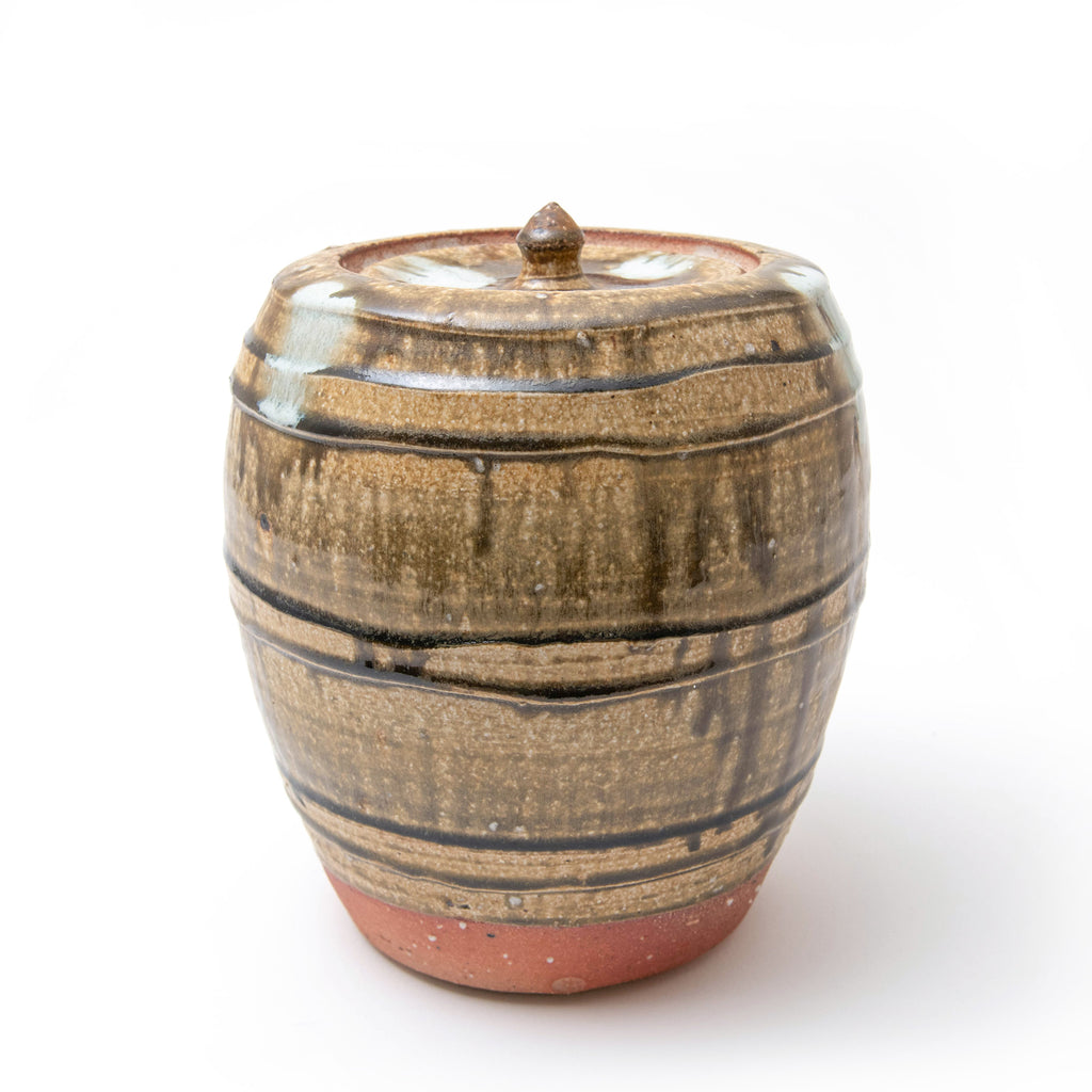 Kington stone & ash glaze with Nuka pours. Wood fired