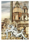 Piazza Navona. The elongated oval of Rome’s loveliest square hints that it is built atop Domitian’s ancient stadium. Three exquisite fountains form a perfect setting for this lively pedestrian paradise. Baroque, the predominant style of the piazza, is visible in many of the area’s churches.