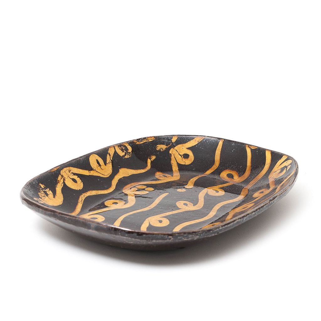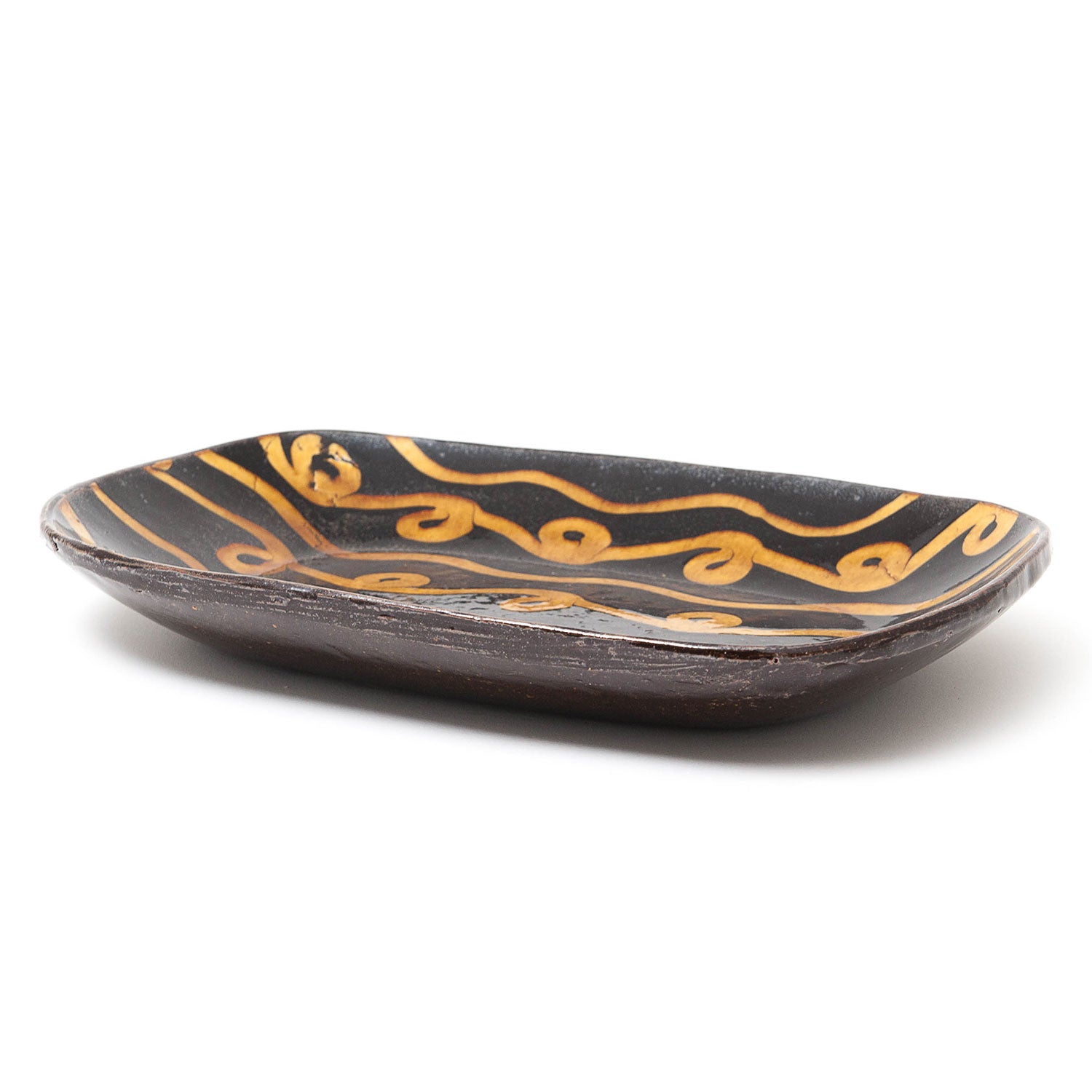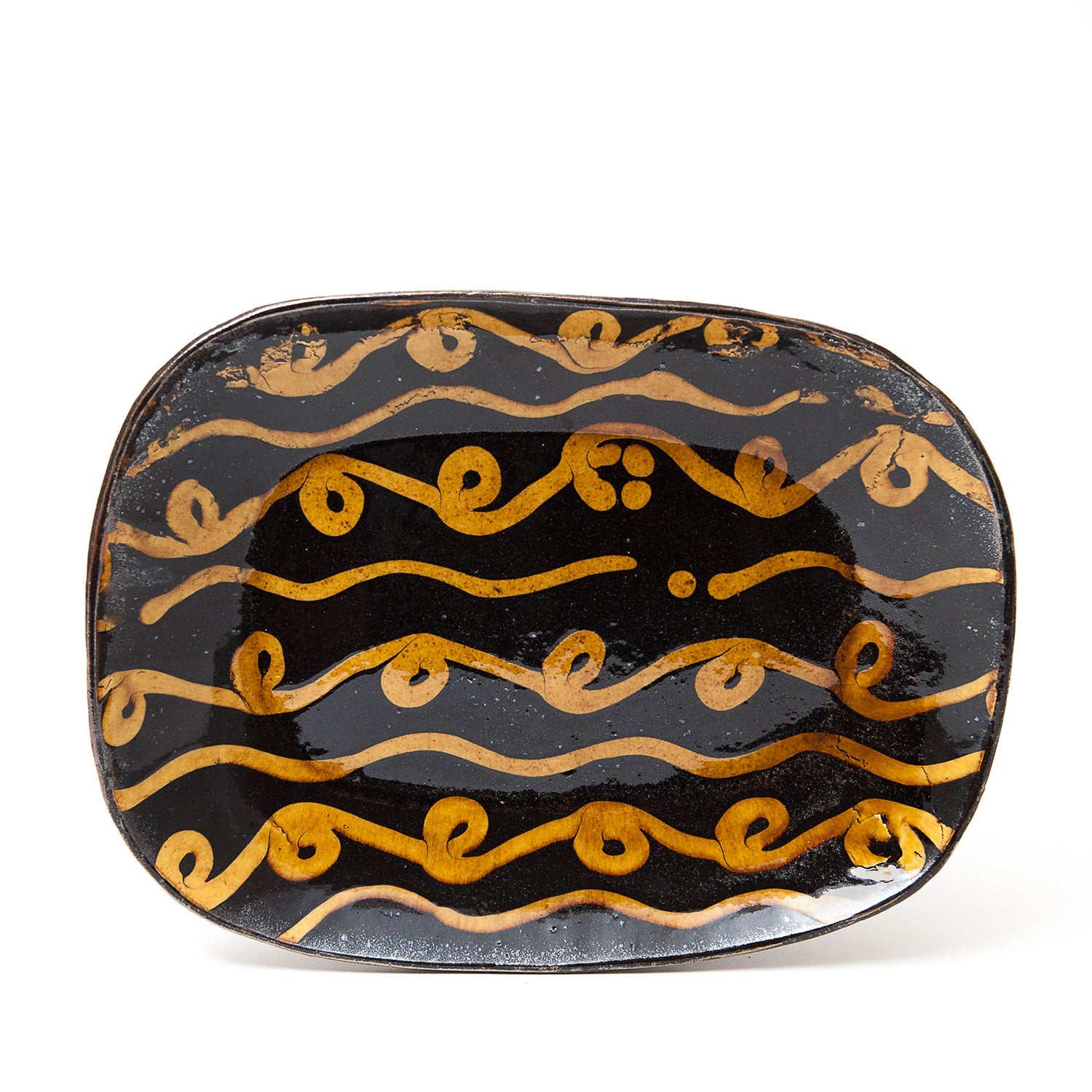 Fitch draws influence from the work of the medieval potters of England and the subsequent tradition of slip decorated country pottery, that was prevalent in this country until the early twentieth century. The slipware platters on offer here are made using the moulds originally used by the great Michael Cardew at Wenford Bridge Pottery.