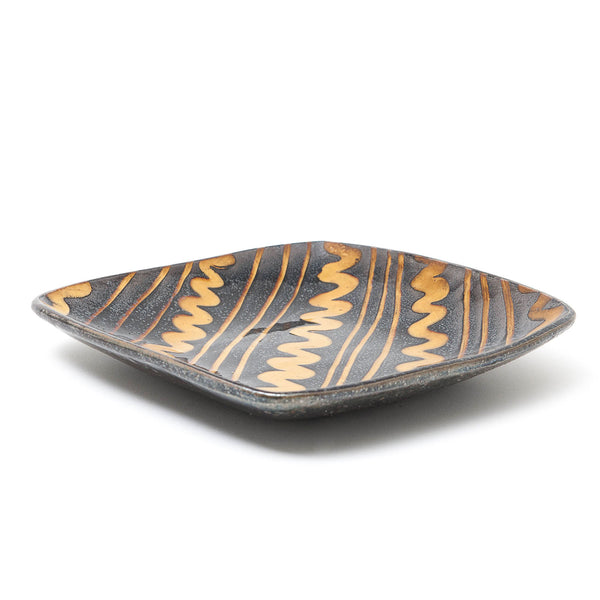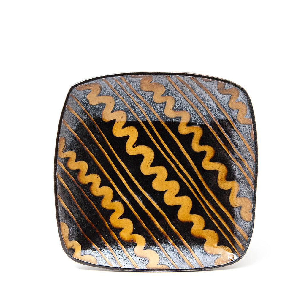 Fitch draws influence from the work of the medieval potters of England and the subsequent tradition of slip decorated country pottery, that was prevalent in this country until the early twentieth century. The slipware platters on offer here are made using the moulds originally used by the great Michael Cardew at Wenford Bridge Pottery.