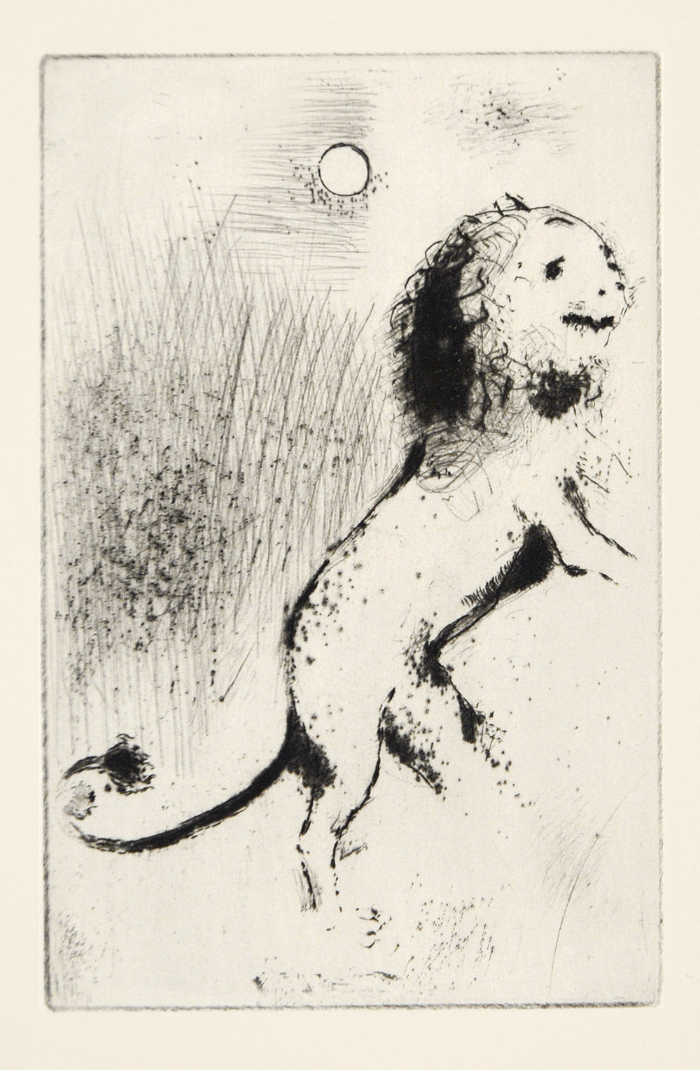 Returning to Paris in 1923 he met the art-dealer Vollard for whom he illustrated Gogol’s Dead Souls and the Fables of La Fontaine. Between 1941-47 he moved between occupied France and the USA, eventually settling near Nice. Chagall was a prolific artist, his work reminiscent of Jewish life, bible stories and of the folklore from his early years in Russia. He died in 1985.