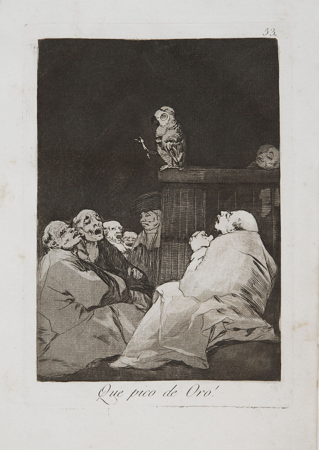 Now almost deaf, Goya’s work showed greater elements of fantasy and satirical observation. Completed in 1799, the Caprichos etchings analysed humanity’s flaws and provided the stylistic basis for his greatest and darkest work, The Disasters of War, composed during the Peninsular War. Goya later returned to Spain, but soon went into voluntary exile in Bordeaux, working until his death there in 1828.