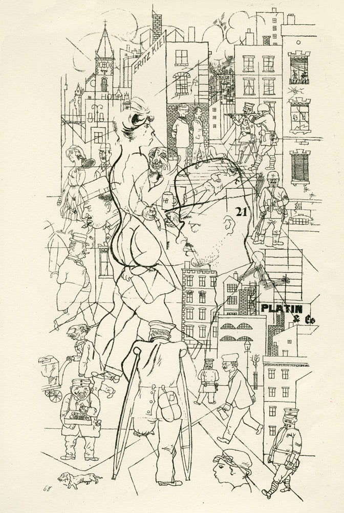 Grosz’s wartime experiences deeply affected his political outlook. He began to convey his hatred of German militarism in satirical images, though his subject matter was soon noticed by the authorities: Grosz was on one occasion prosecuted for indecent representations, which offend the sense of modesty and morality of a person of normal feeling. Inevitably, Grosz was hounded by the authorities and in 1933 he fled to America to settle permanently, returning to Berlin just once before his death there in 1959.