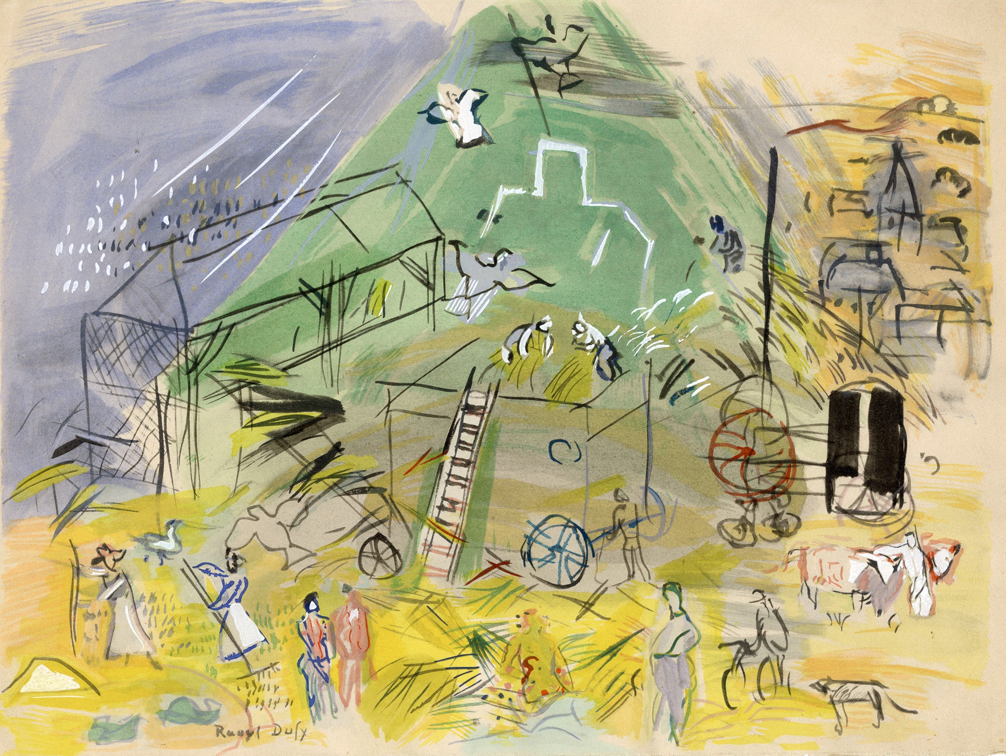 Dufy’s work is characterized by brightly coloured drawings suiting the glittering scenes of luxury and pleasure he favoured; the accessibility of his work lent itself to commercial advertising and was widely copied as a result. Dufy died at Forcalquier in 1953 and was buried near Matisse in Cimiez, a suburb of the city of Nice.