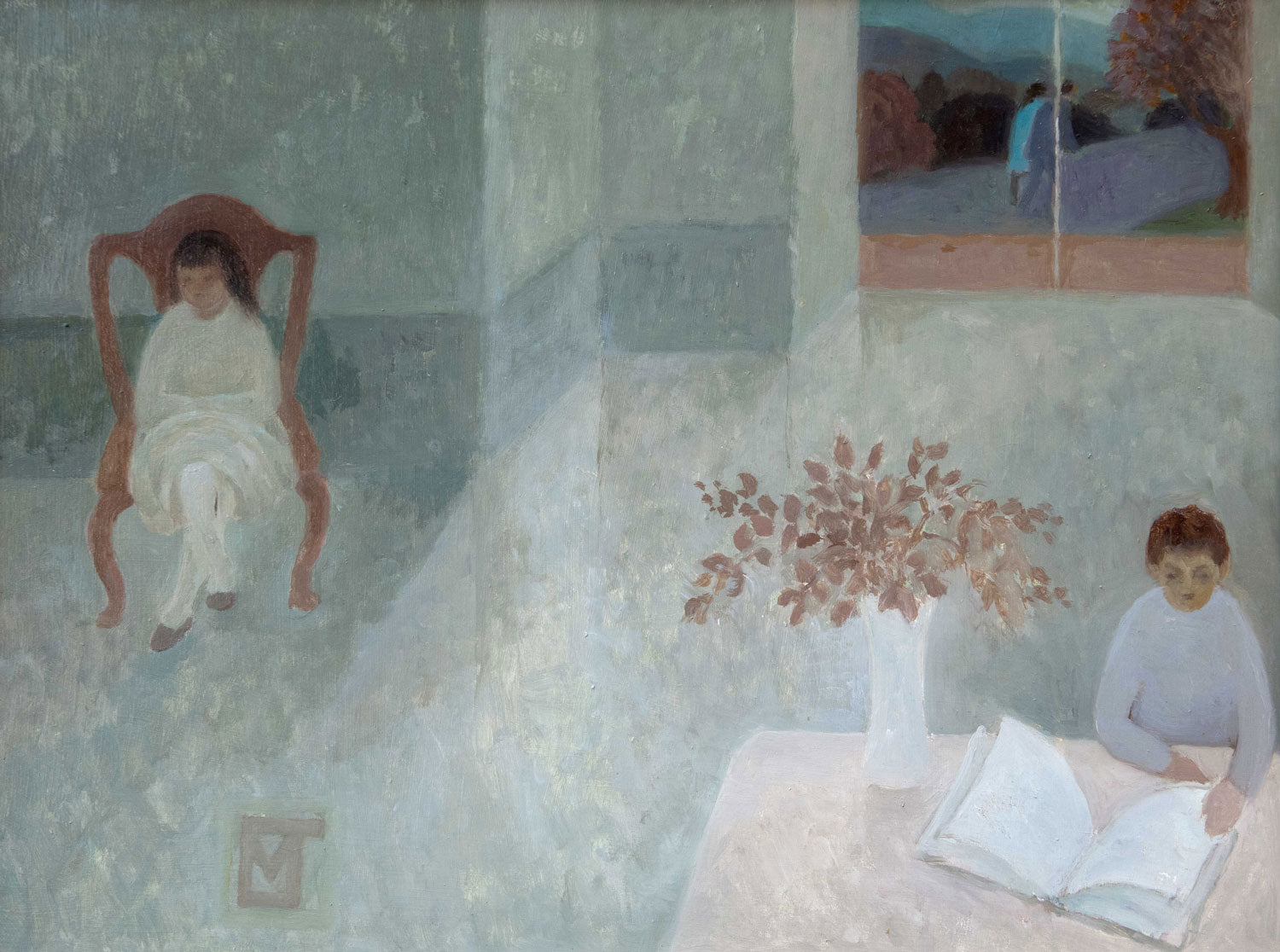 In 1976 Thistlethwaite relocated to an old family home in colloquial ‘Downalong’, Victoria Place, in the Mount Zion area of St Ives, and became a regular of the local art scene. Her subjects were typically imagined interior scenes, muted still lifes, or paintings of the world going by, tinged by a dreamlike, cryptic quality in the vein of Winifred Nicholson. In 1997 ill health forced Thistlethwaite to leave St Ives for Surrey, where she died in December 2000.