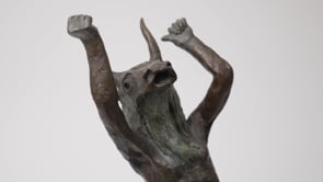 Olive Wootton returns to the Greek myth of the minotaur, a subject that she engages passionately with. "She finds appealing 'the battle between his human and animal make up'" Chris Wrigley, Goldmark catalogue 2015.