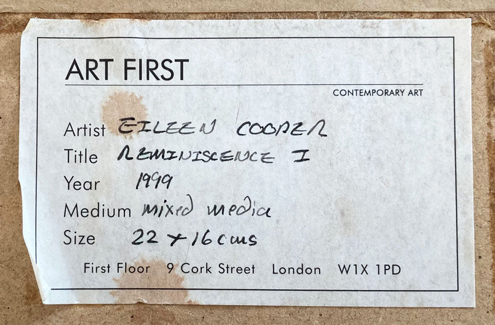 Exhibited at Flowers East and Art First, gallery labels verso.