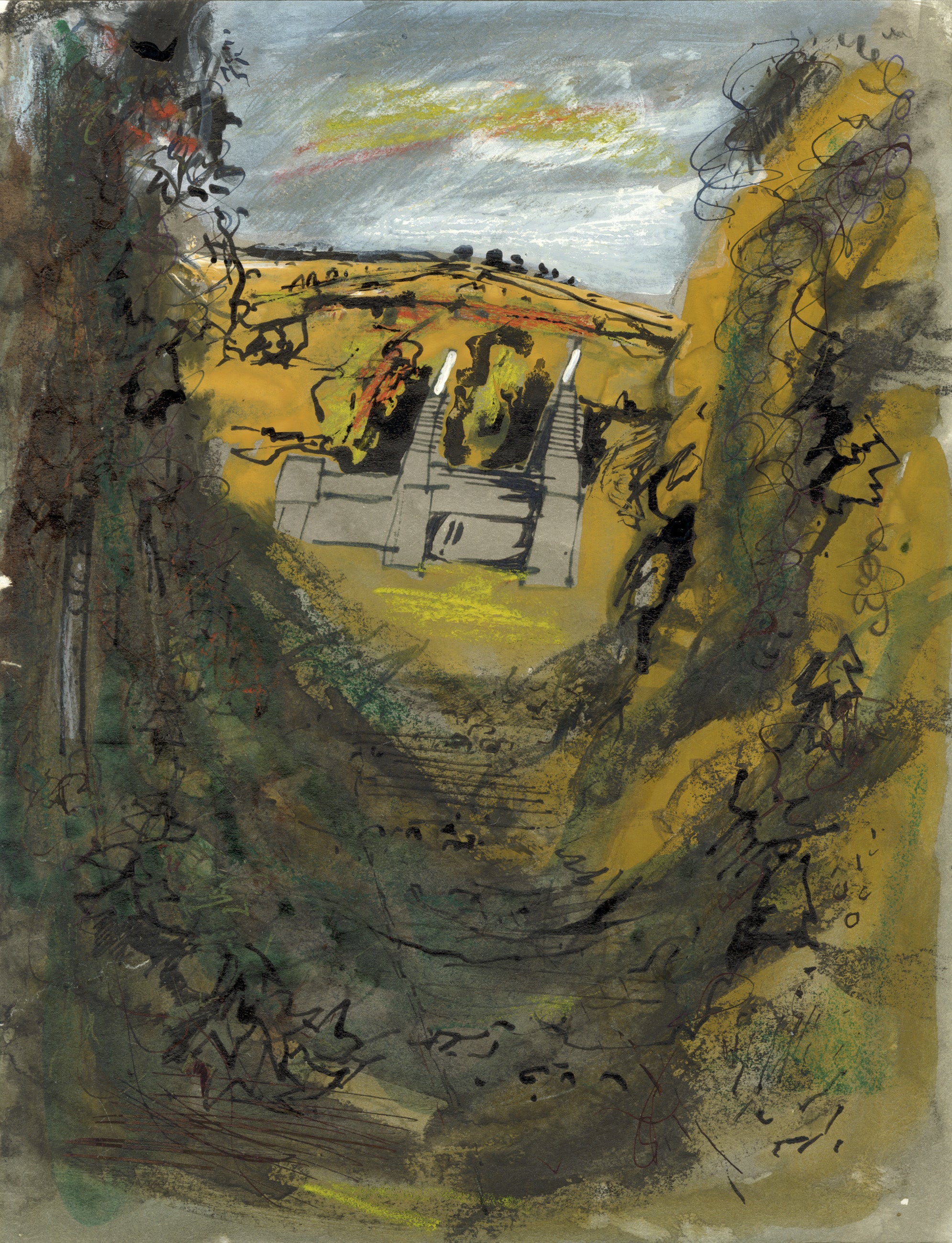 Estate stamp signed watercolour, gouache, pen and ink and pastel on paper.