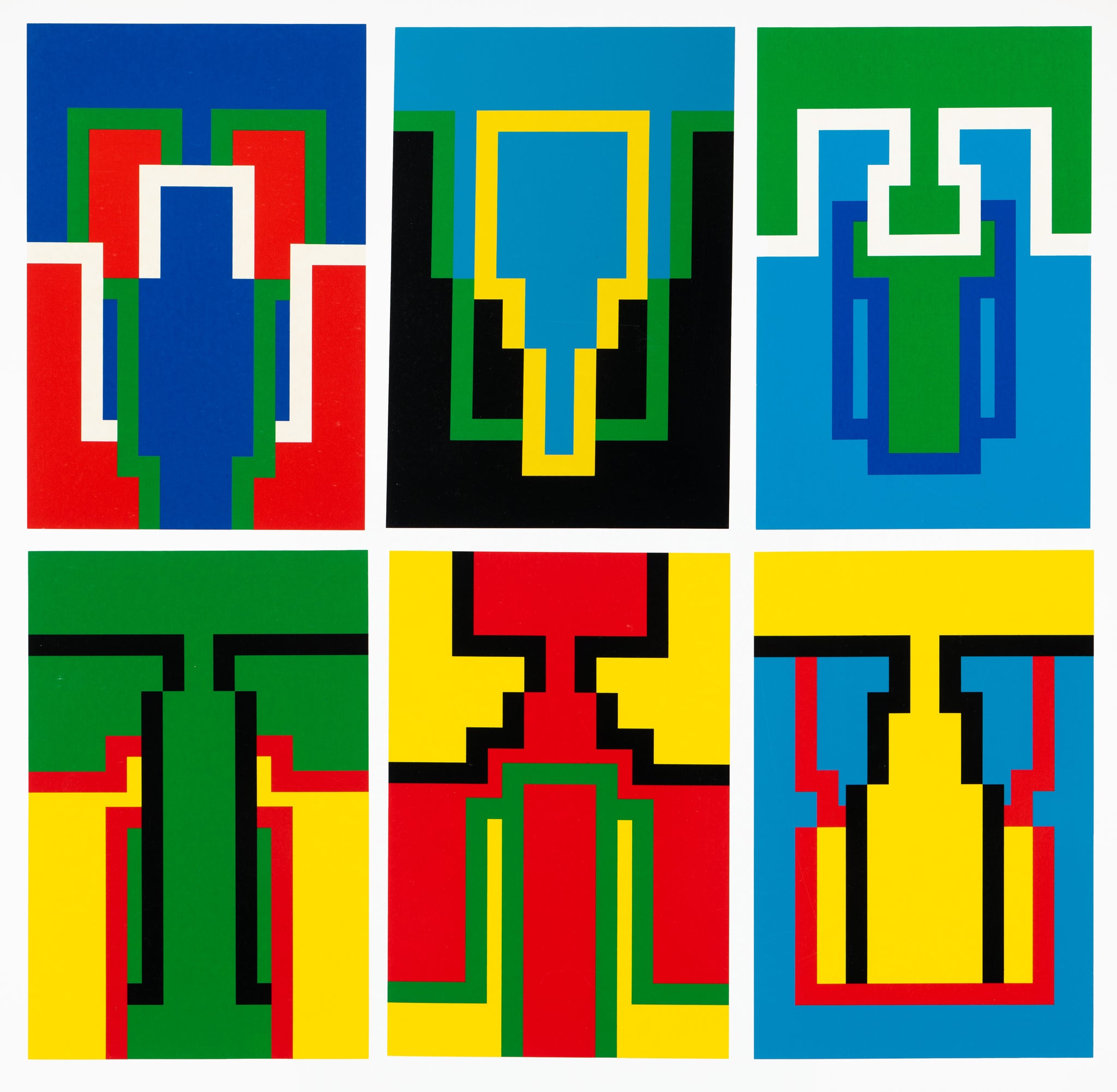 Six signed, dated and numbered original screenprints with varnish on paper.