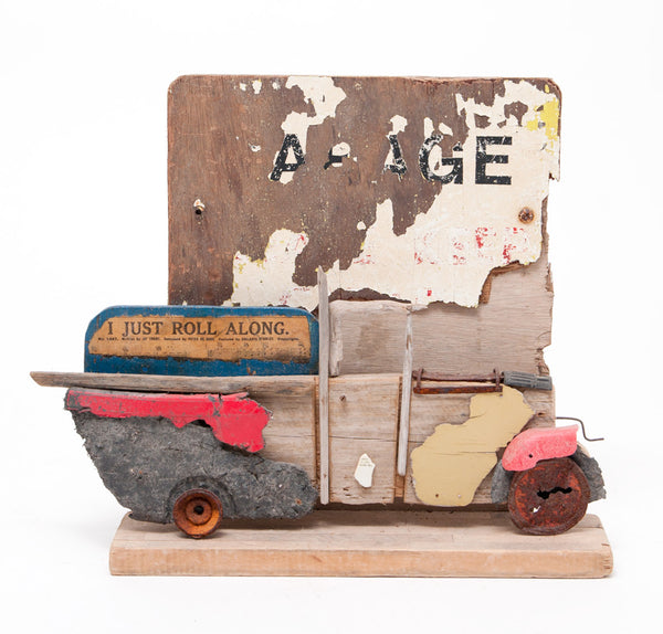 He is now based in Borth near Aberystwyth in Wales, where the flotsam and jetsam from the nearby sea is his only source of materials. Working with found objects, nothing is changed - simply introduced to one another. His driftwood pieces, usually birds, boats or mythical beasts, are full of his passion, integrity and wonderful humour.