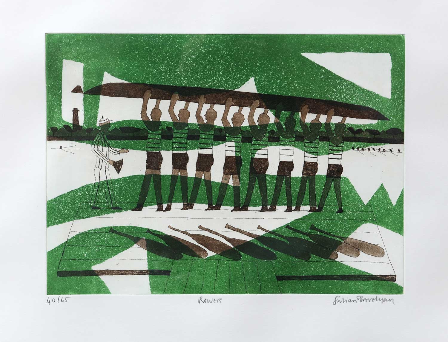 In 1935 he set up his etching studio at Durham Wharf in Hammersmith, where he remained until his death in 1988. From 1955-63, Trevelyan worked at the Royal College of Art and became Head of the Etching Department. Highly enthusiastic, he became an influential teacher, with students including David Hockney, Ron Kitaj and Norman Ackroyd.