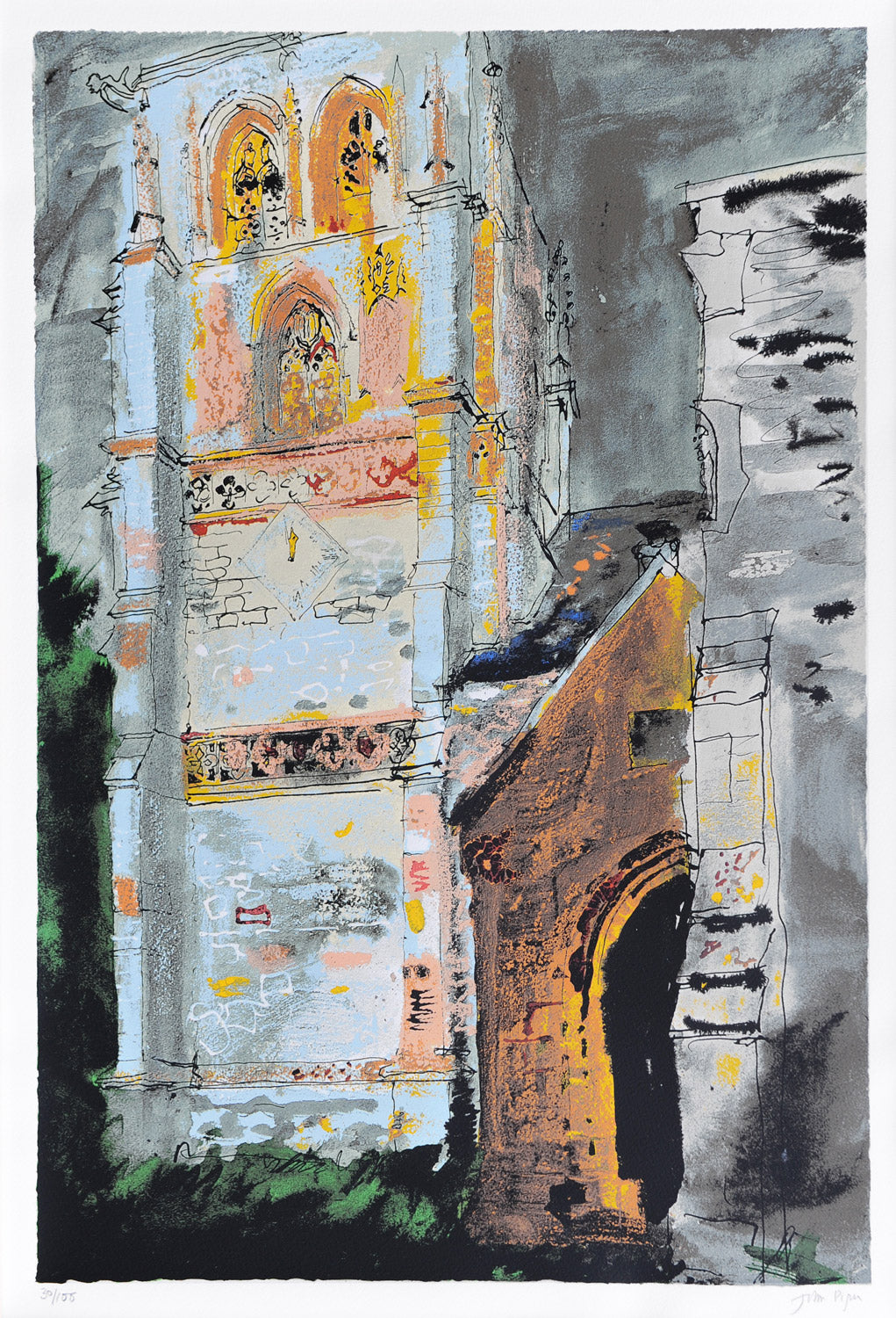 Piper experimented with printmaking from as early as 1923 when he produced four wood engravings. Piper’s prints embody his love of Britain through their depiction of its art, architecture and topography. However frequently underpinning their design, as the artist Rigby Graham has indicated, are the elements of collage, construction and assemblage that featured in his modernist work of the early 1930s.