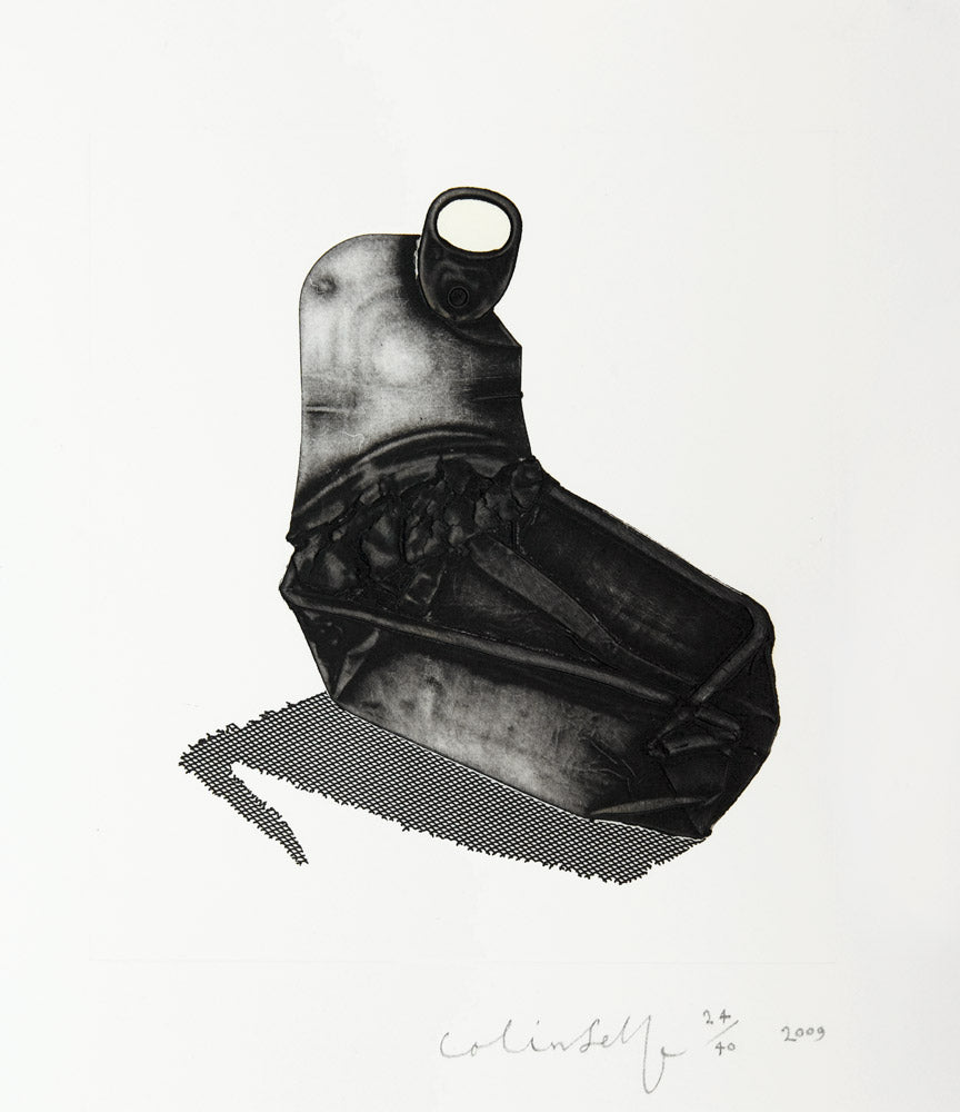 Self is an important printmaker and in some respects he redefined the process of etching by inking separate metal plates placed side by side, often printing from found objects or producing unique variants rather than uniform editions of prints. The Tate holds many of Self’s works in diverse media and over many years Self has exhibited internationally.