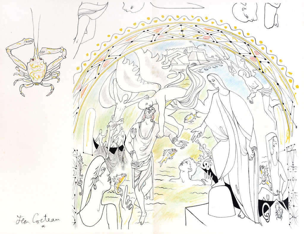 However, it was not until his later life that Cocteau added art to his catalogue of theatrical productions, films and writing, experimenting in pastels, prints and posters and eventually taking up easel painting in 1950. Cocteau loved the spectacle of bull-fights, often watching shows alongside Picasso, and the Taureaux set of lithographs they inspired was published in 1965, two years after his death.