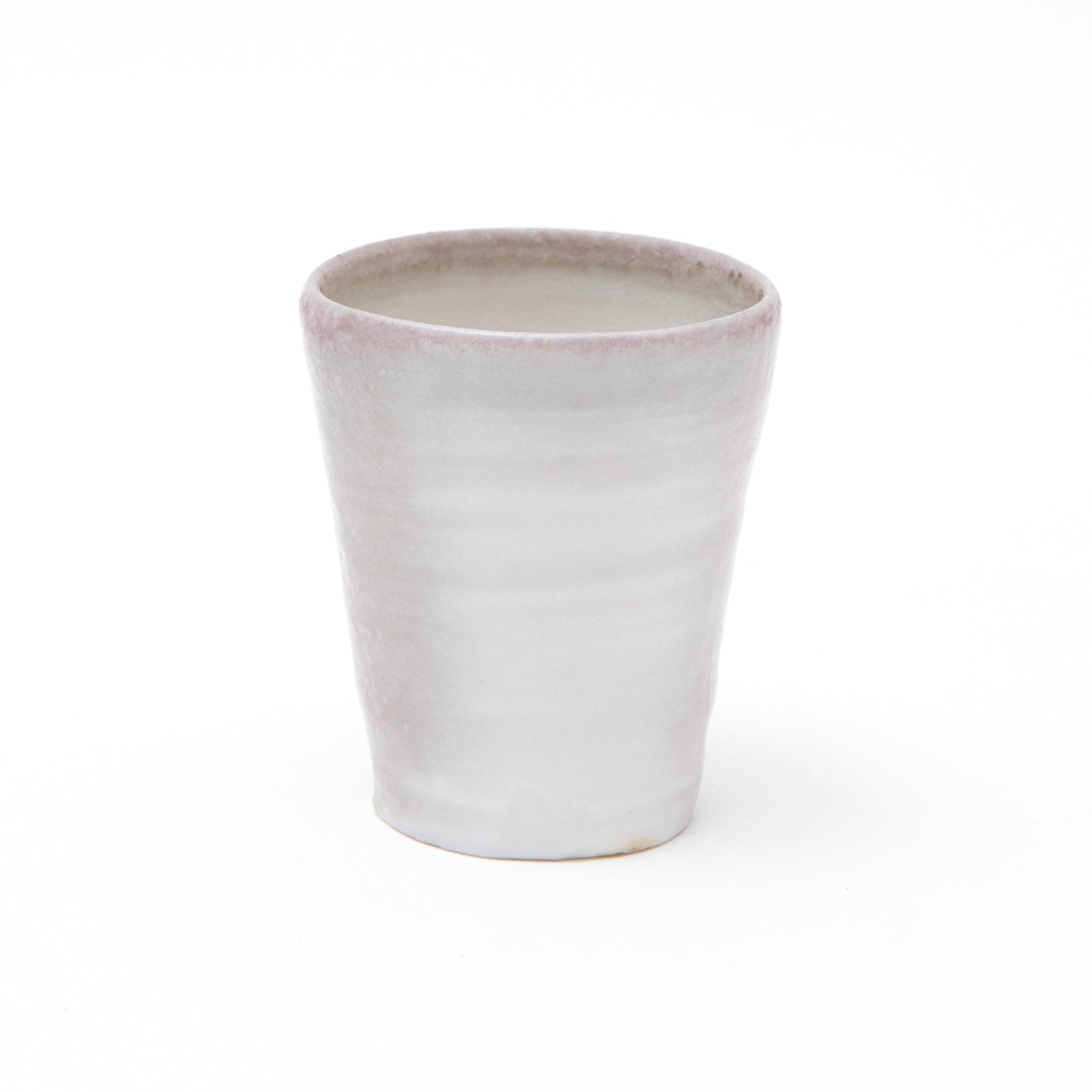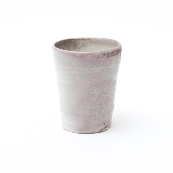 His square-lipped pouring bowls are refined with a touch that belies the coarseness of his clay, while blushing wood-fired porcelain bottles shimmer with pink and purple pearlescence.